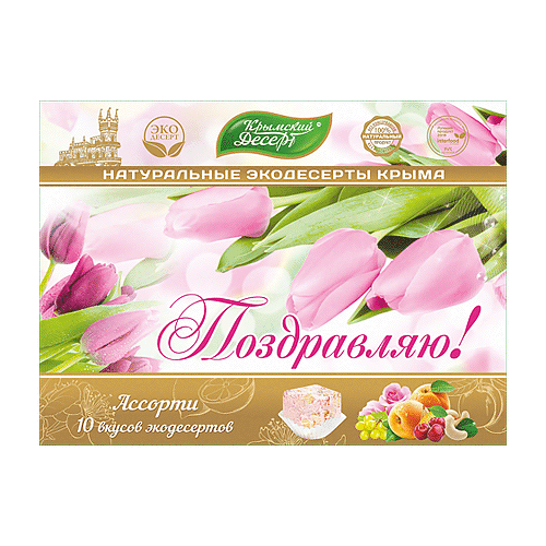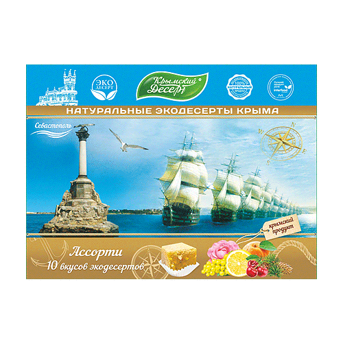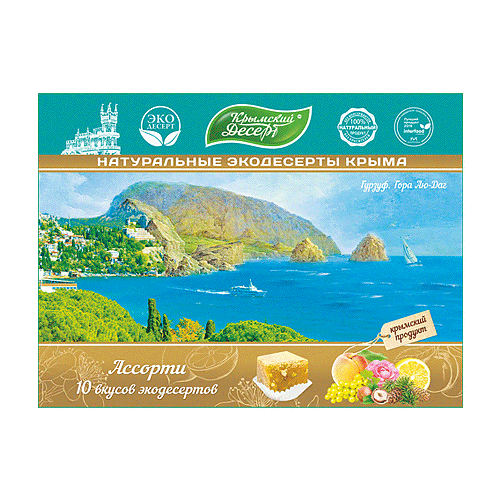 вода, сахар, патока, крахмал кукурузный, вишневое пюре, персиковое пюре, яблочное пюре, лимон, курага, апельсин, изюм, клюква, инжир, грейпфрут, гранат, миндаль, кешью, арахис, семечка подсолнечника, фундук, экстракт сосновых почек, виноградный сок, крахмал гороховый, кунжут, мак, кукурузная мука, молочная сыворотка, рисовые шарики, цикорий (пребиотик-инулин), морковь, гибискус, колючелистник, кокос, лепестки роз, лаванда, агар-агар, пектин, имбирь, куркума, гвоздика, кардамон, корица, ваниль, апельсиновое масло, эфирное масло мяты.